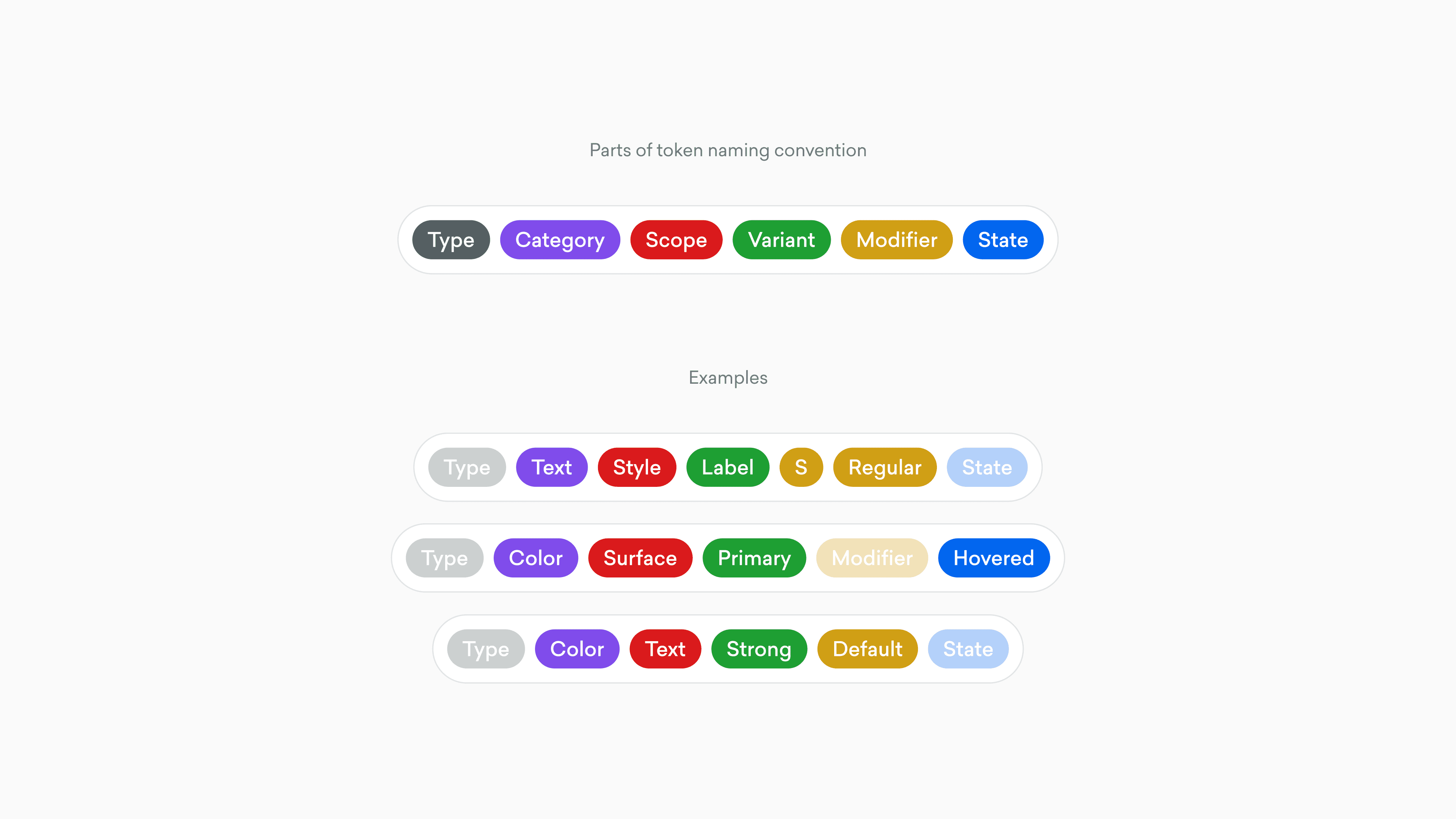 A clear and consistent naming convention was established to ensure that every token was instantly understandable to both designers and developers. Tokens were structured by type, style, size, and state — for example, text.label.S.regular.initial — making it easy to locate the right token for any use case without guesswork.